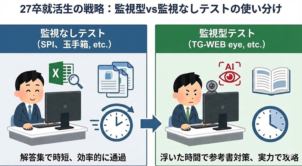 監視型は自力で解けるよう対策し、それ以外はツールで効率化する。これが賢い就活生の戦い方です。